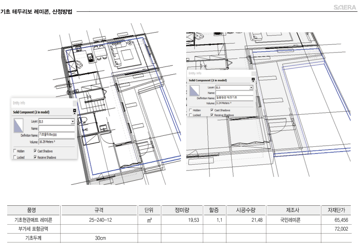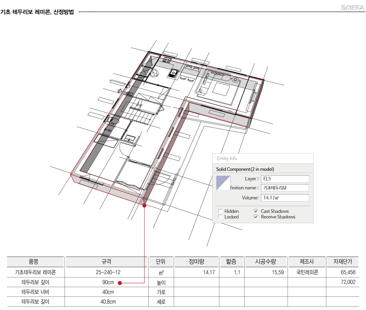 테두리보 레미콘 수량입니다. 세라종합건설은 견적의 정확성을 위해 컴퓨터로 물량을 산정하지만 수기로 하는 방법은 가로x세로x높이입니다.